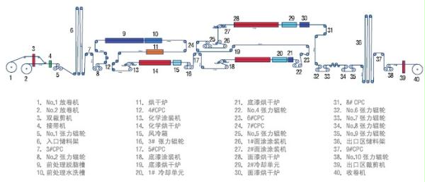 工業滑升門彩涂鋼卷生產工藝流程: